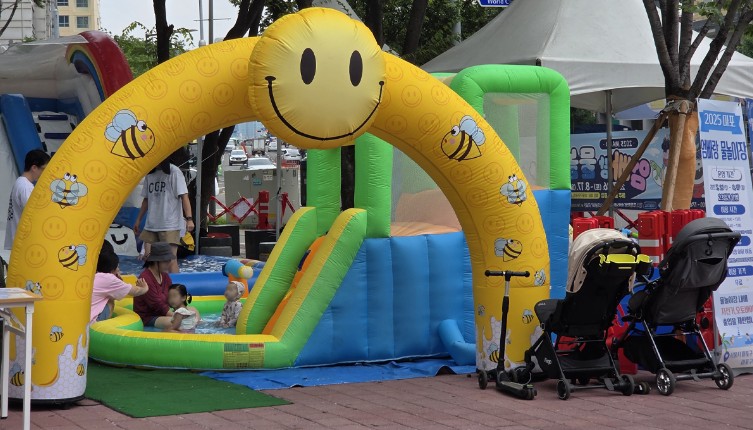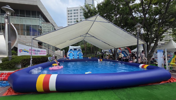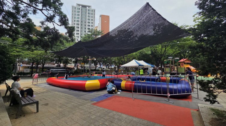 - 아이들의 물총놀이와 부모들의 휴식 공간이 조화.
