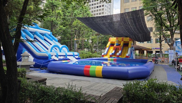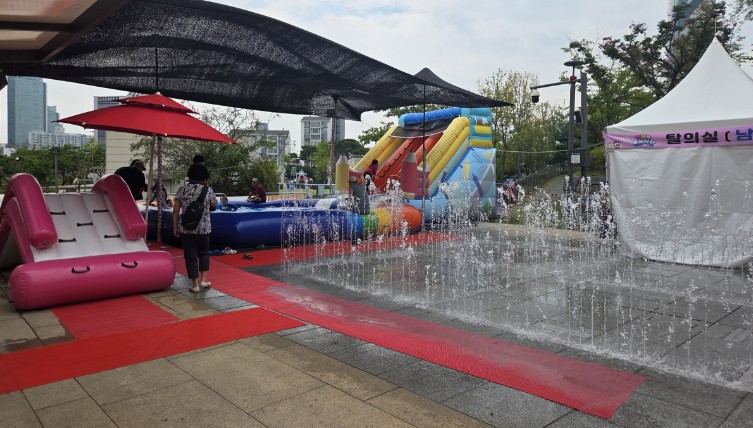 - 마포구청 앞 넓은 광장이 아이들의 시원한 물놀이장으로 변신.