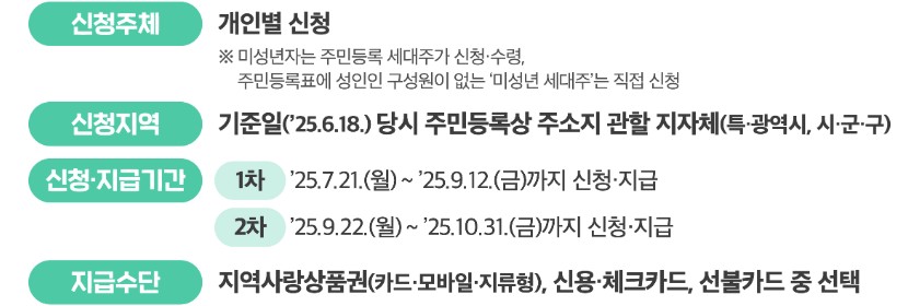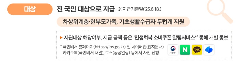 - 지원 대상 및 소비쿠폰 지급 금액