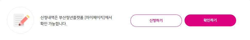 - 신청내역 확인은 부산청년플랫폼 > 마이페이지에서 확인 가능합니다.
