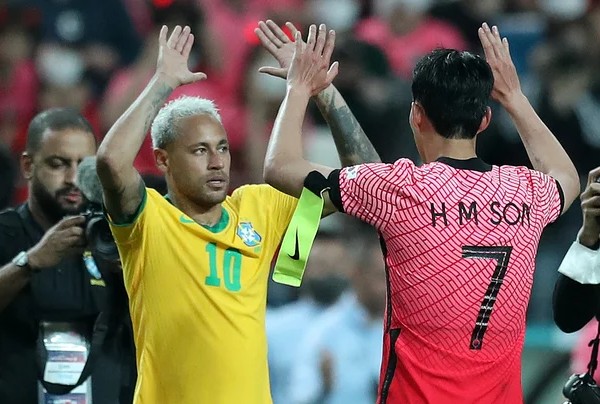 1992년생 동갑내기인 손흥민(LAFC)과 네이마르(산투스)는 3년 만에 서울에서 다시 만납니다. 2022년 서울 평가전에서 네이마르는 페널티킥으로 2골을 넣었고, 경기 후 손흥민과 유니폼을 교환하며 ‘CRACK(경기를 바꾸는 선수)’라는 찬사를 보냈습니다.