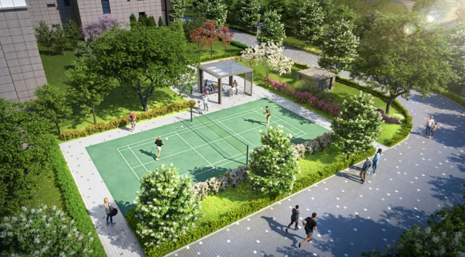 - 커뮤니티 시설 : 스크린 테니스, 실내테니스 연습장, 실내체육관, 골프클럽, 피트니스클럽, 사우나, 독서실, 공유오피스, 키즈카페 등