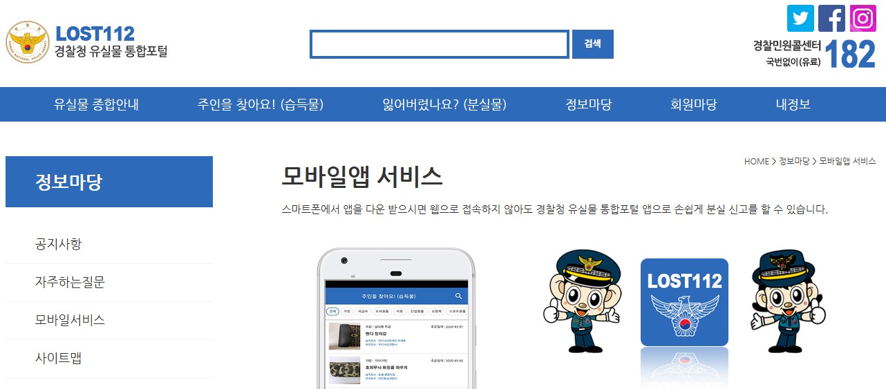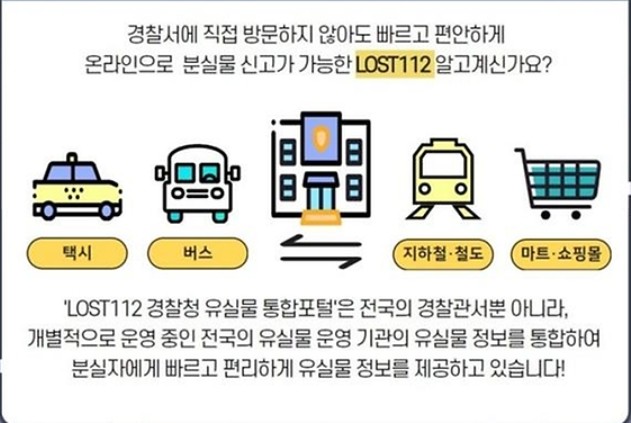LOST112는 경찰청에서 운영하는 전국 유실물 정보 통합 검색 포털입니다.