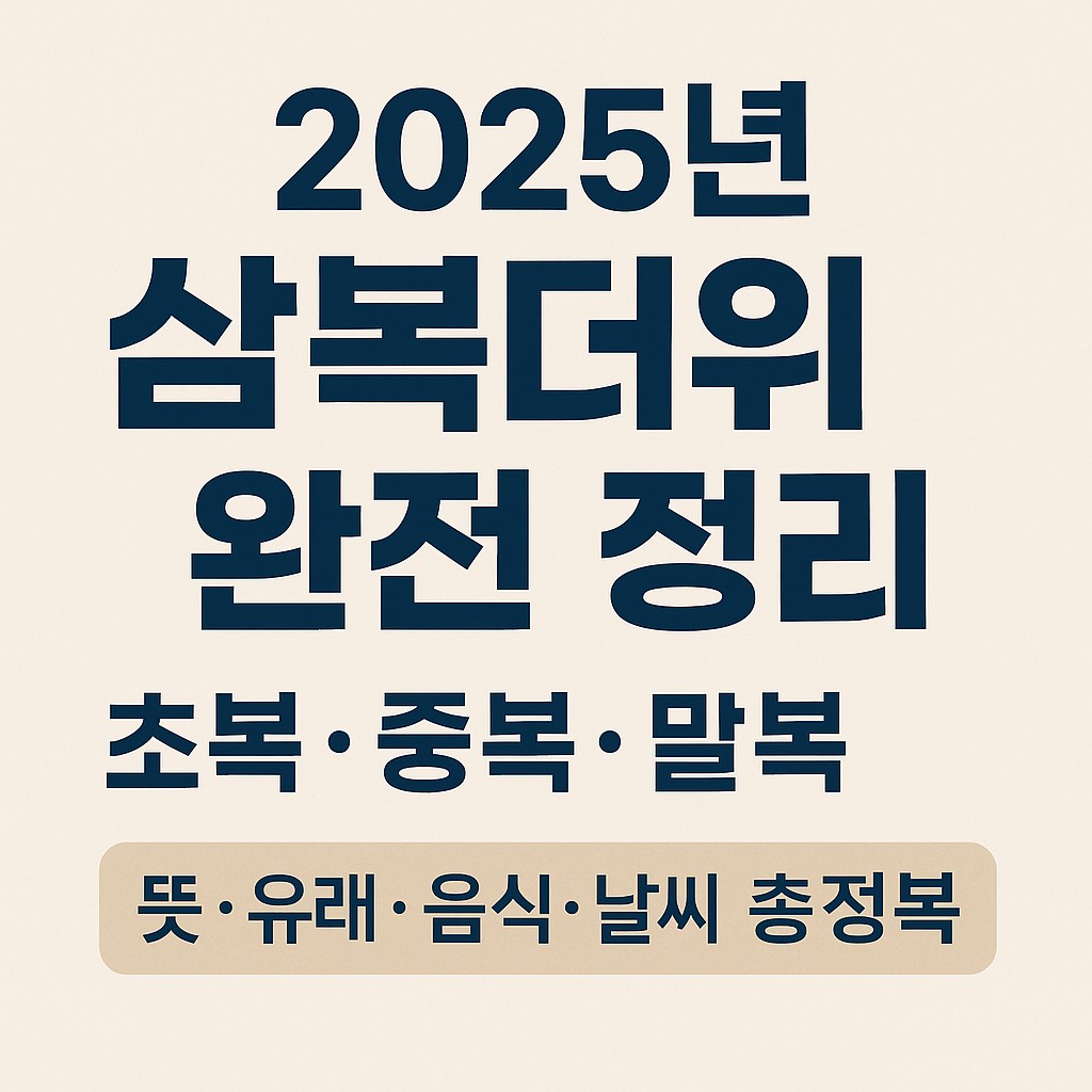 2025년 삼복은 7월 20일 초복을 시작으로 7월 30일 중복, 8월 9일 말복까지 이어집니다. 이 시기에는 우리 몸과 마음이 지치기 쉬운 만큼, 전통 보양식과 건강 습관을 통해 체력과 면역력을 잘 관리해야 합니다.
