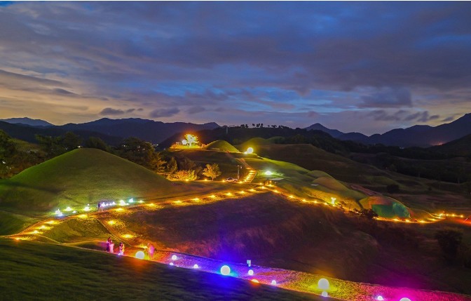 - 별빛 산책: 고분군 일대에 조성된 야간 조명길 산책