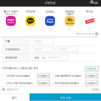 - 인증 수단 선택 (PASS, 카카오 인증서 등)