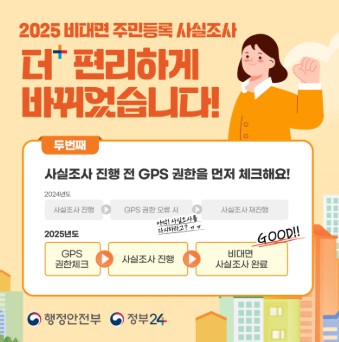 주민등록 사실조사는 단순한 행정 절차가 아니라, 우리 모두의 복지와 정책 설계의 기반이 되는 중요한 조사입니다. 모바일 비대면으로 1분 만에 참여할 수 있는 만큼, 올해는 꼭 참여해 보시길 권장드립니다.