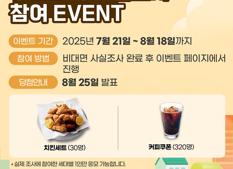 - 비대면 참여 후 이벤트 참여 시 추첨을 통해 치킨세트 및 커피 쿠폰 증정