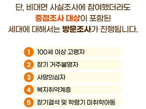 조사 대상: 대한민국 전체 주민 (특히 유아나 고령자 조사 강화)