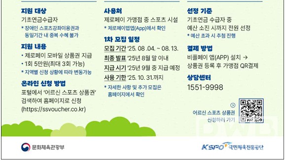 2025년, 문화체육관광부가 기초연금을 받는 만 65세 이상 어르신을 대상으로 1인당 최대 15만 원 상당의 어르신 스포츠 상품권을 지원합니다. 이번 혜택을 통해 건강도 챙기고, 다양한 체육시설을 합리적으로 이용해보세요.